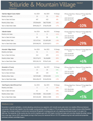 San Miguel County’s November 2025 performance reflects a market returning to a more sustainable transactional pace after several volatile years.