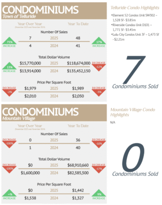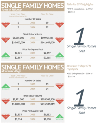 San Miguel County’s November 2025 performance reflects a market returning to a more sustainable transactional pace after several volatile years.