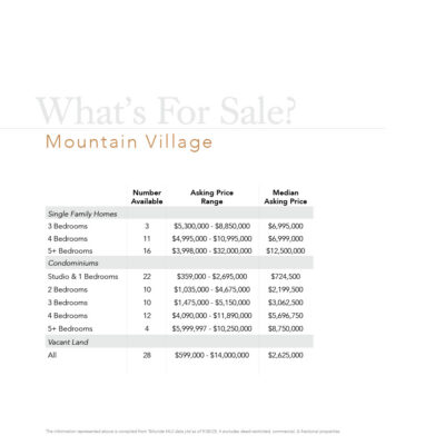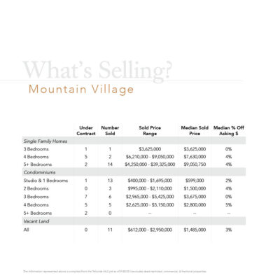 Inventory is tight, with quality properties in the Village core and ski-in/ski-out locations moving