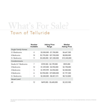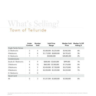 whole story. Telluride Properties remains the dominant market leader having closed $527.5M YTD